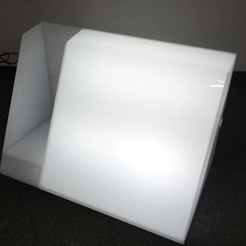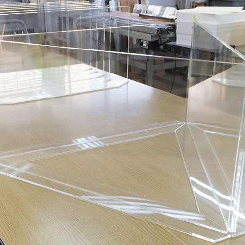アクリルの端面をダイヤモンド刃物で磨き処理をする加工です。端面がピカピカに光ります。