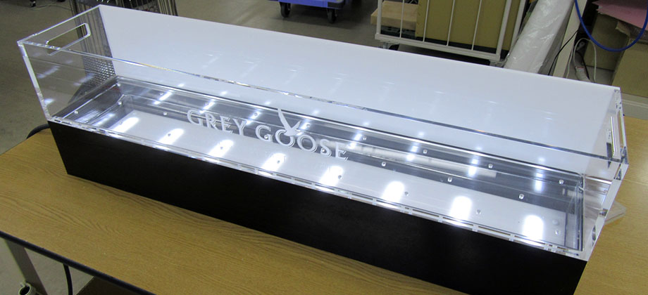 LED照明付き、アクリルの中に瓶や氷、水を入れてバーカウンターに設置。お洒落に演出します