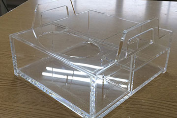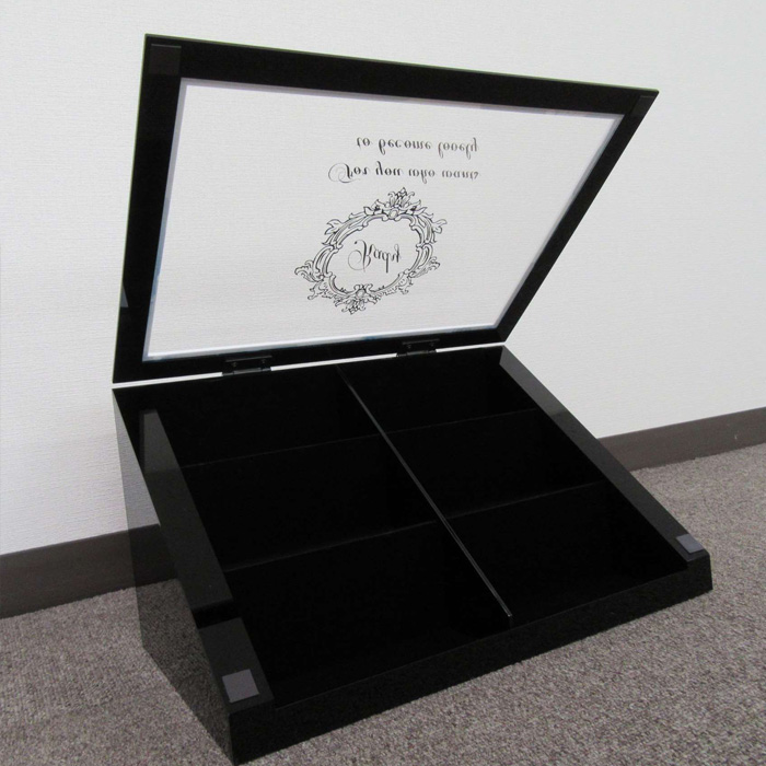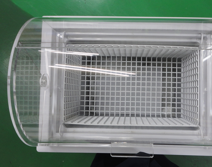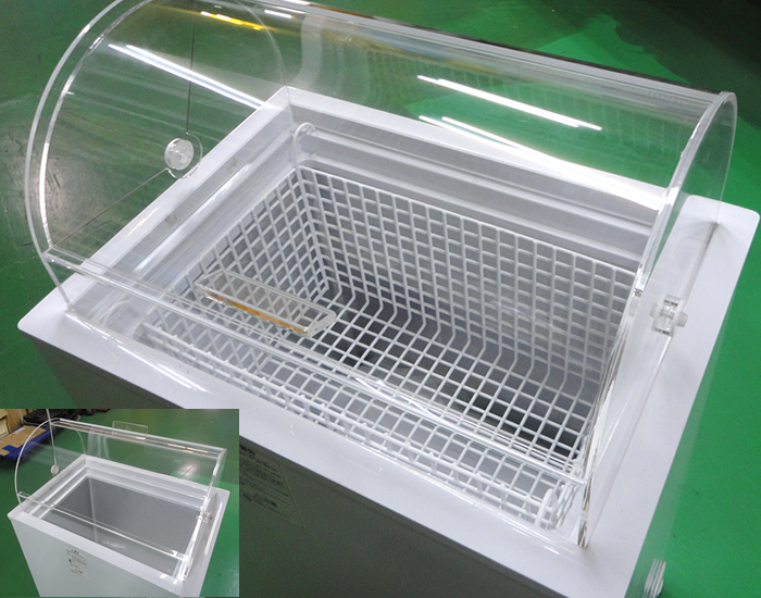 中身が良く見えて、上下開閉式により取り出しやすい。アクリルを R 曲げ加工しているのが特徴。