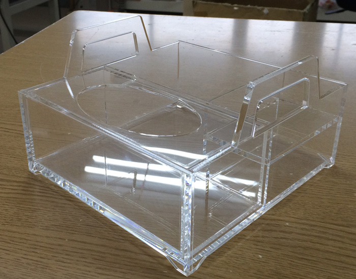 中身が良く見えて、上下開閉式により取り出しやすい。アクリルを R 曲げ加工しているのが特徴。