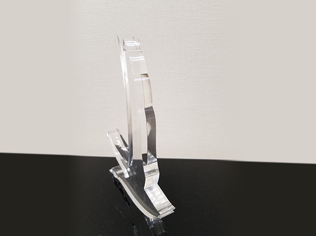 アクリルの端面をダイヤモンド刃物で磨き処理をする加工です。端面がピカピカに光ります。